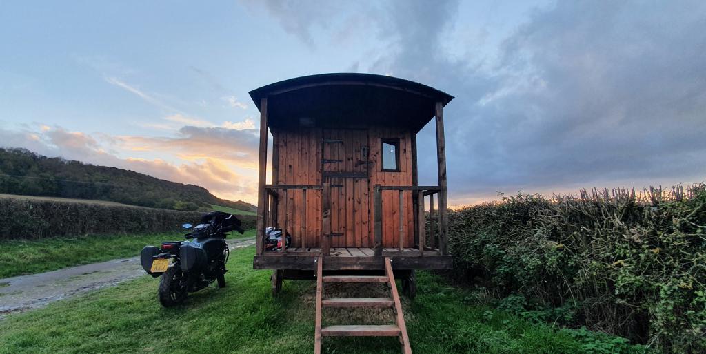 Next stop, the Rustic Green Shepherds Hut under the Wenlock Edge. We were there by five. We were both tired, and we were both hungry. We had a nice dinner from the local petrol station and a couple of beers and headed to sleep early.